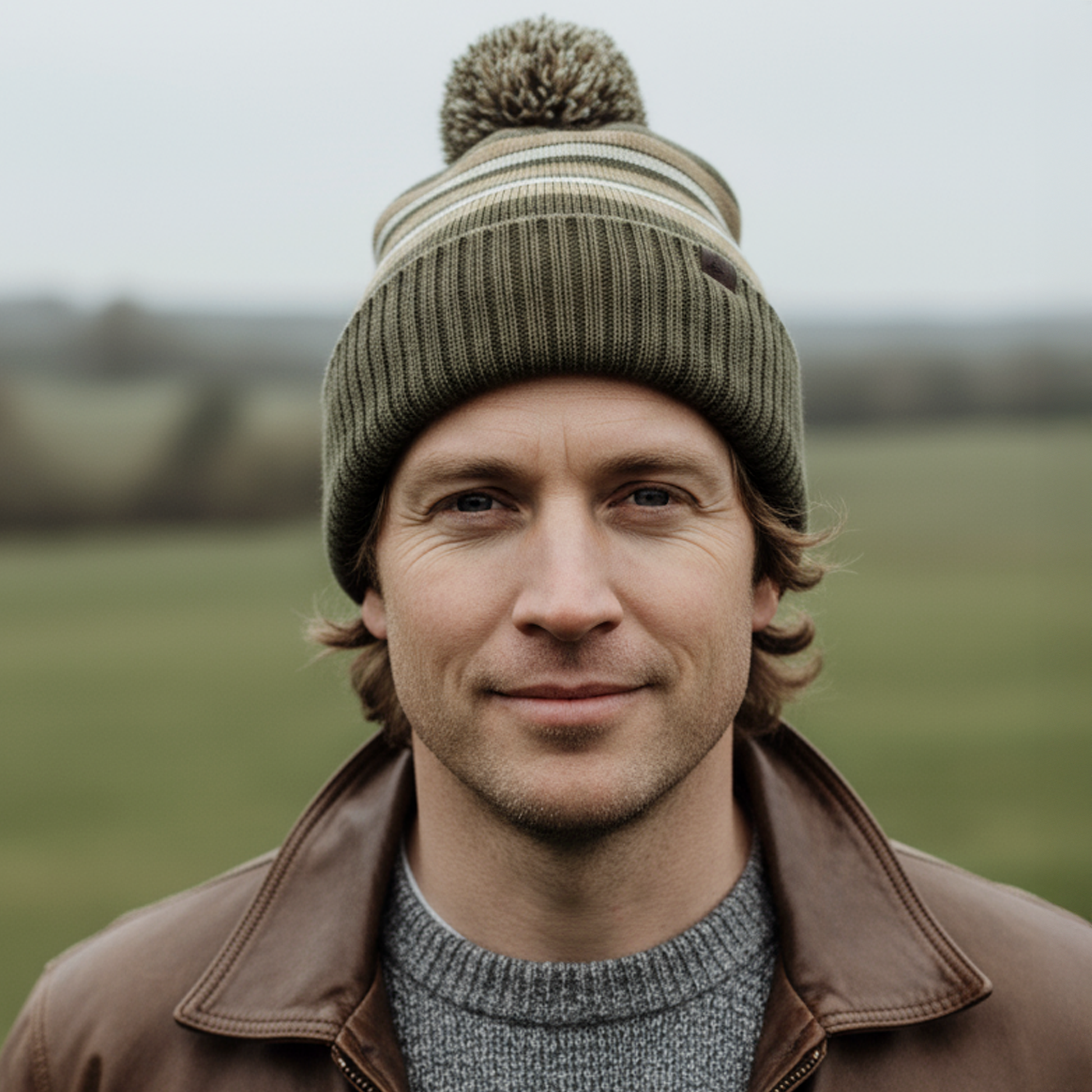 MENS MULTI-STRIPE POM-POM LINED HAT