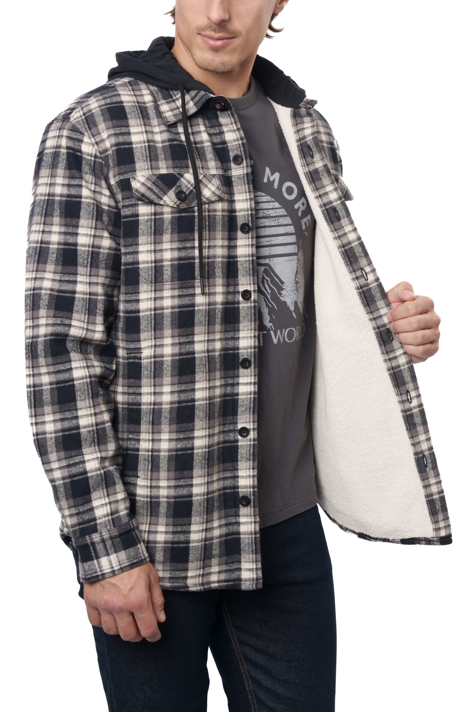 THE RANIER SHERPA LINED HOODED FLANNEL SHIRT JACKET