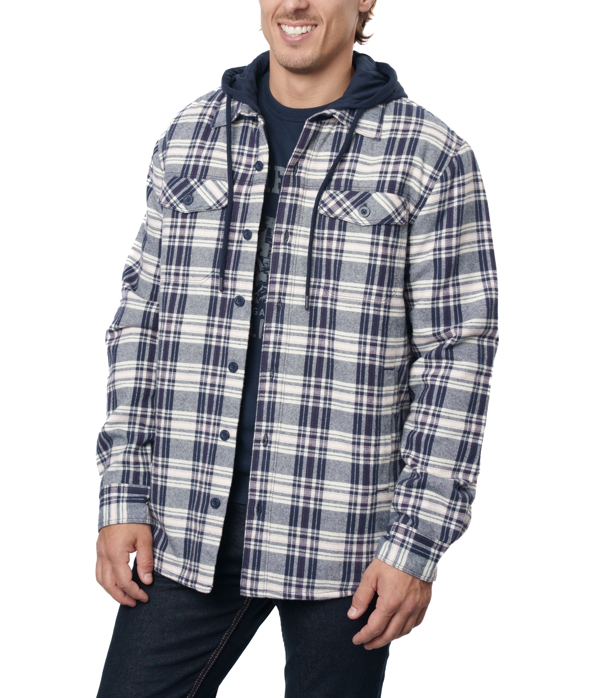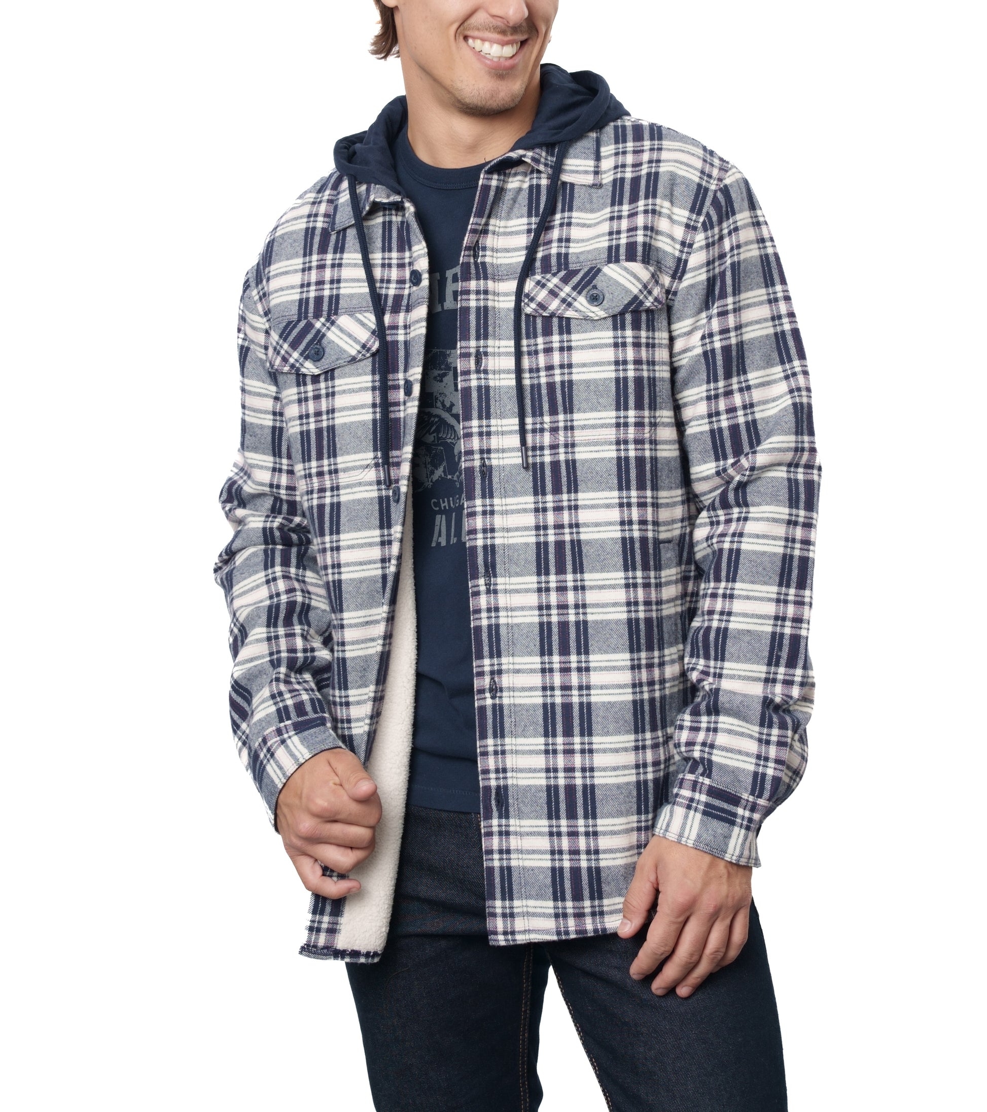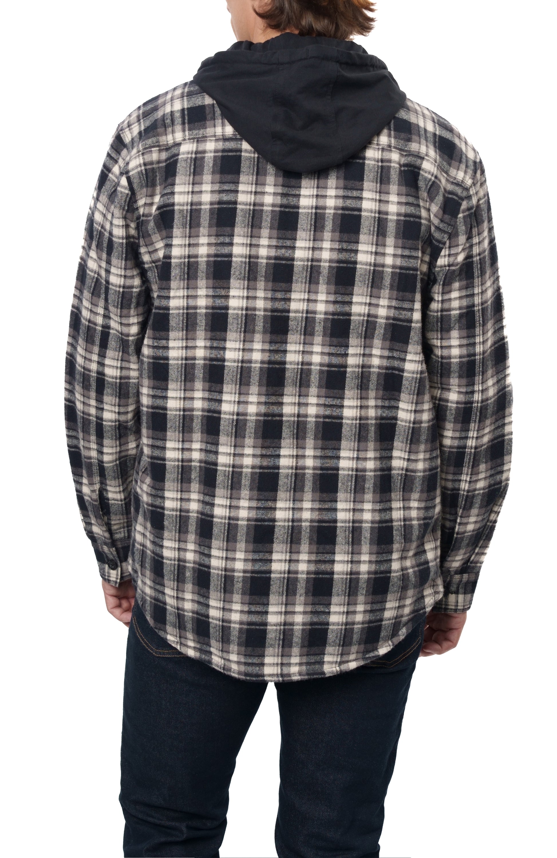 The Rainforest Ranier Sherpa Lined Hooded Flannel Shirt Jacket - your go-to outerwear for ultimate comfort and style. Crafted with a brushed heavyweight flannel fabric, this shirt jacket offers both warmth and durability. The soft sherpa lining adds an extra layer of coziness, making it perfect for those chilly days. With double chest pockets featuring flaps and lower welt pockets, you'll have ample space to store your essentials. The jersey hood adds a trendy touch to the classic flannel design. This jacket is true to size and can be conveniently cleaned with a machine wash cold and tumble dry low. Elevate your wardrobe with the Rainforest RANIER SHERPA LINED HOODED FLANNEL SHIRT JACKET today.